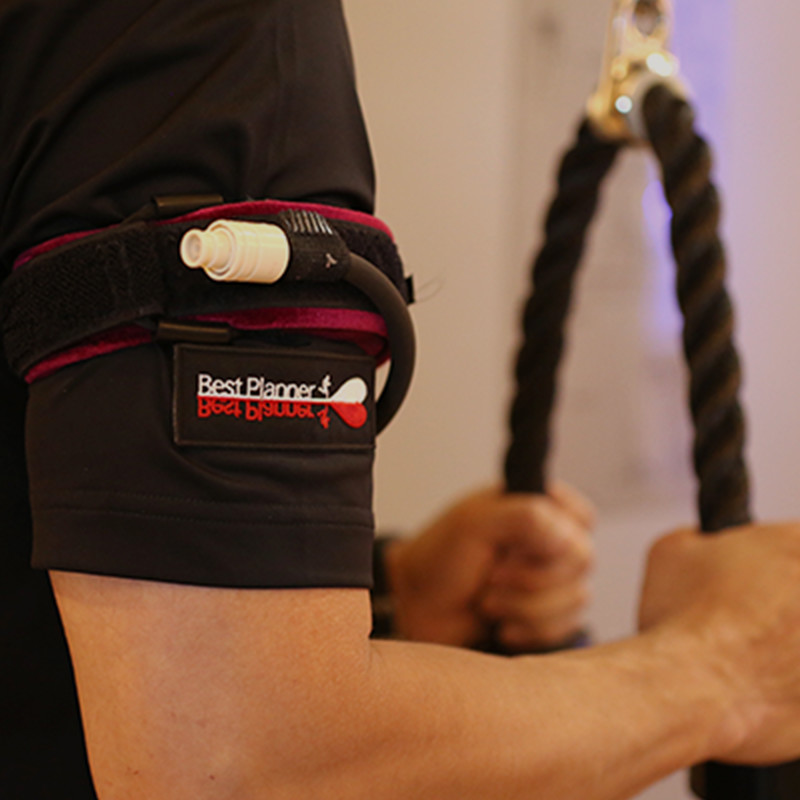 腕や脚の付け根を専用の加圧ベルトで締め、適切に血流制限した状態でトレーニングを行うことを“加圧トレーニング”といいます。